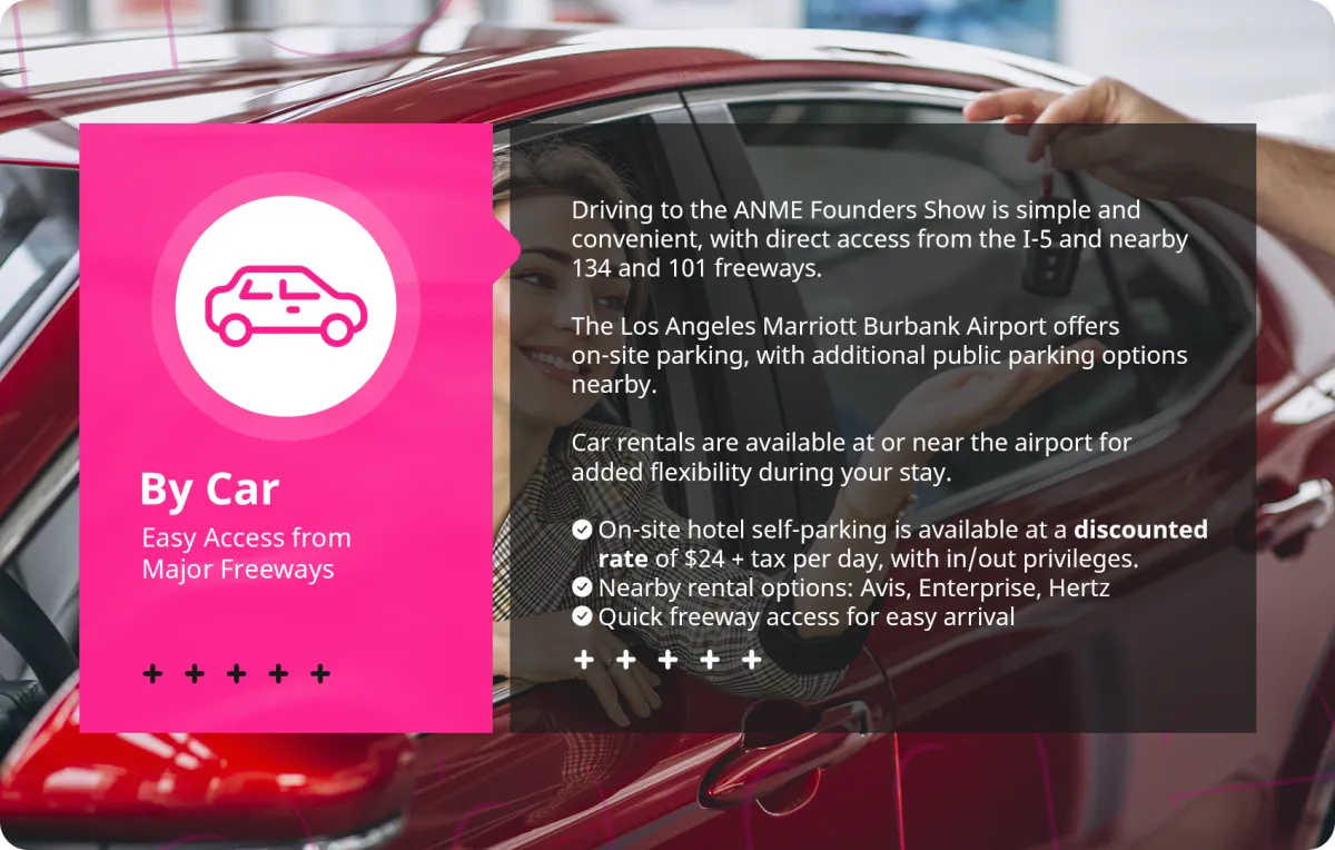 Everything you need to book your hotel, arrange travel, and enjoy your time at the ANME Founders Show.